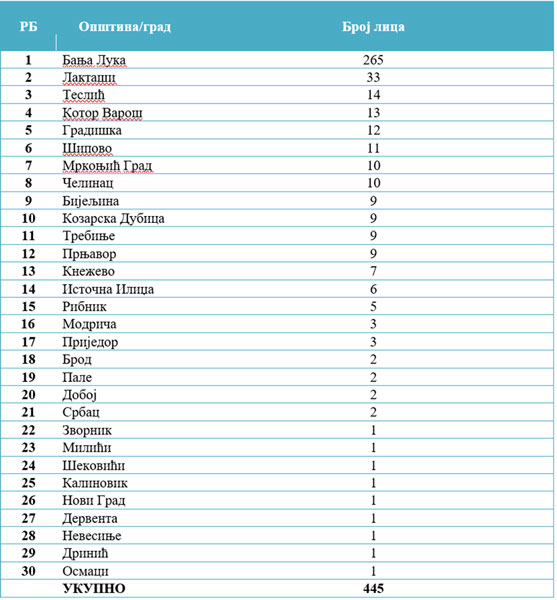 Najviše oporavljenih je u Banjaluci – 265, a slijede Laktaši sa 33 oporavljena, Teslić sa 14, Kotor Varoš sa 13, Gradiška sa 12 oporavljenih.