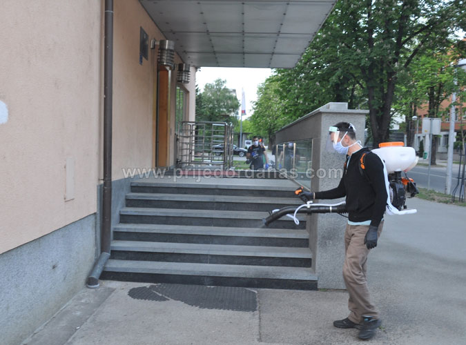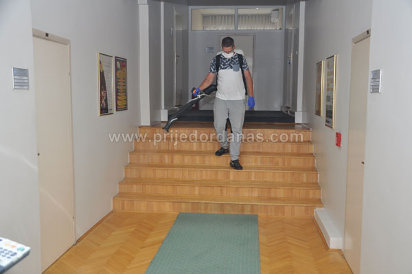 Detaljna dezinfekcija zgrade Gradske uprave Prijedor – FOTO admin May 14, 2020 Detaljna dezinfekcija zgrade Gradske uprave Prijedor – FOTO2020-05-14T23:00:01+02:00 Svakodnevno Likes Rating 12345Večeras je u našem gradu obavljena još jedna dezinfekcija u borbi protiv korona virusa. Po nalogu gradonačelnika Prijedora Milenka Đakovića ovoga puta rađena je detaljna akcija u zgradi Gradske uprave. Na poziv Zlatka Ritana, šefa Tima za dezinfekciju pri Štabu za vanredne situacije grada Prijedora, odazvali su se volonteri koji od početka pandemije korona virusa učestvuju u ovim aktivnostima. Oni su uz pomoć leđnih atomizera, u ovoj akciji prošli sve kancelarije, sale, hodnike, stubišta, šalter sale i ulaze u objektu. Tekst i foto – www.prijedordanas.com dezinfekcija, korona