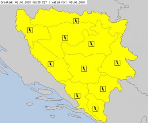 Ponedjeljak – 8. juni: Žuti meteoalarm za područje Prijedora admin June 8, 2020 Ponedjeljak – 8. juni: Žuti meteoalarm za područje Prijedora2020-06-08T08:40:11+02:00 Društvo Likes 0Rating 12345Hidrometeorološki zavodi izdali su narandžasti meteoalarm za područje Prijedora za ovaj ponedjeljak, 8. juni 2020. godine. Očekuju se lokalni grmljavinski procesi. Budite spremni za ove vremenske uslove. meteoalarm