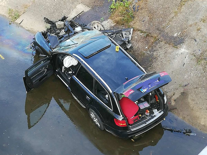 Policiji je u ponedjeljak oko 15.00 časova prijavljeno da je u Preobraženjskoj ulici na putu Kozarska Dubica-Draksenić “audi” sletio u rijeku Moštanicu.