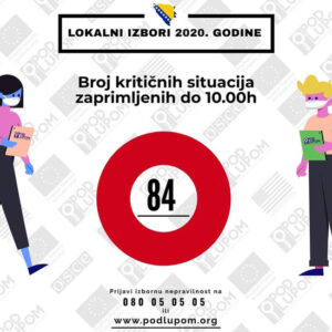 Građani sve uočene nepravilnosti tokom izbornog dana mogu prijaviti Koaliciji “Pod lupom” na besplatan broj 080 05 05 05 ili na sljedećem linku https://bih2020.electionsobserver.org/neregularnosti/ .