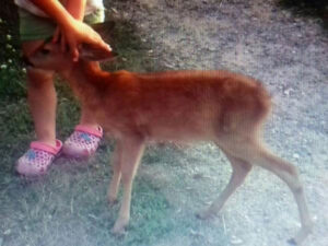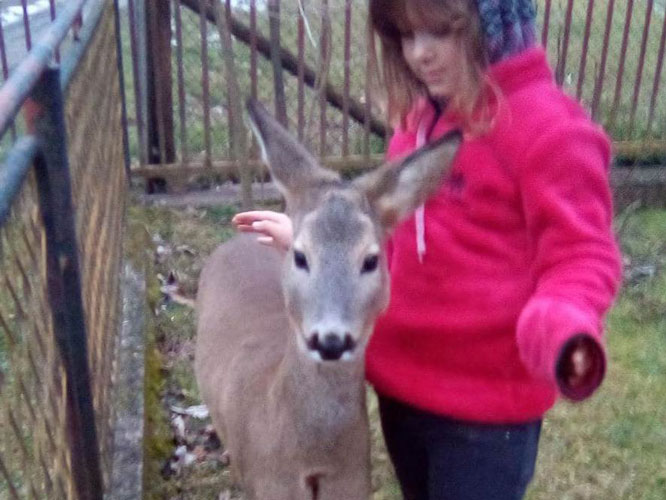 Srna koju su Marija i Bojana Krivaja iz Busnova kod Prijedora pronašle i othranile dok je bila malo lane, i nakon dvije godine i slobodnog života u šumi skoro svakodnevno posjećuje porodicu koja ju je spasila.