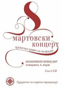 Udruženje za očuvanje tradicije Prijedor organizuje “Osmomartovski koncert” u saradnji sa Kolom srpskih sestara Prijedor, Kud “Kozara” iz Prijedora i Kud “Knešpolje” iz Knežice.