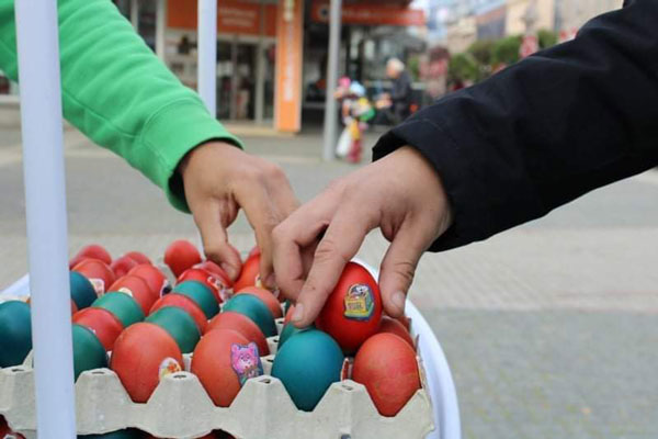 Mladi ispred Omladinskog savjeta Prijedor i PRONI Omladinskog kluba su na najljepši mogući način obilježili Vaskrs tako što su slučajnim prolaznicima podijelili vaskršnja jaja i peretke.