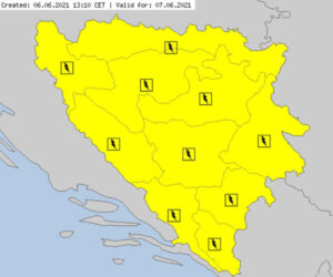 Ponedjeljak – 7. juni: Žuti meteoalarm za područje Prijedora admin June 6, 2021 Ponedjeljak – 7. juni: Žuti meteoalarm za područje Prijedora2021-06-06T14:23:59+02:00 Društvo Likes 0Rating 12345Hidrometeorološki zavodi izdali su žuti meteoalarm za područje Prijedora za ovaj ponedjeljak, 7. juni 2021. godine. Očekuju se lokalni grmljavinski procesi. Budite spremni za ove vremenske uslove. meteoalarm