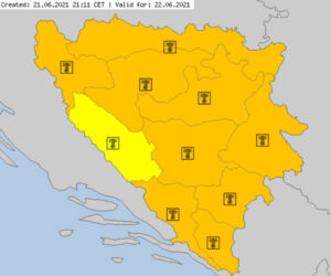 Utorak – 22. juni: I dalje narandžasti meteoalarm za područje Prijedora admin June 21, 2021 Utorak – 22. juni: I dalje narandžasti meteoalarm za područje Prijedora2021-06-21T22:43:16+02:00 Društvo Likes 0Rating 12345Hidrometeorološki zavodi izdali su narandžasti meteoalarm za područje Prijedora za ovaj utorak, 22. juni 2021. godine. Očekuje se maksimalna temperatura vazduha veća od 35 stepeni Celzijusa. Budite spremni za ove vremenske uslove.