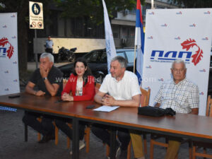 Nakon devetog sabora Gradskog odbora PDP Prijedor, čelni ljudi ove partije učestvovali su u razgovoru s građanima na Malom trgu u Prijedoru.