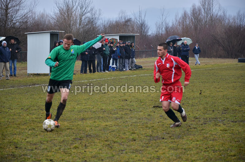 Igrali su izabranici trenera Zorana Bujića po teškom terenu „Suvog Prijedora“, koliko je to bilo moguće, brzo, sa dobrim radijusom kretanja posebno igrača iz vezne linije i lako osvajali prostor. U 19. minuti nakon kornera Filipa Arežine sa lijeve strane Siniša Radoja bio je najviši u skoku i glavom sa sedam-osam metara zatresao mrežu gostiju iz Milosavaca za 1:0.