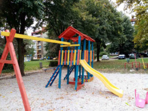 Tako od početna dva tobogana, mališani imaju samo jedan, a ljuljaški na drvenoj kućici uopšte nema.