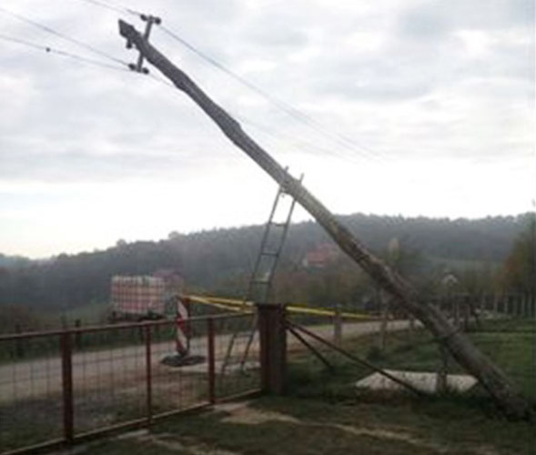 Snalažljivi mještani su “pijanu banderu” koja prijeti da se sruši podbočili ljestvama, ali naglašavaju da su veoma zabrinuti jer nadležni danima ne rješavaju problem.