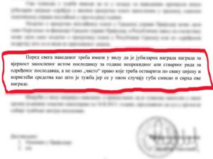 Osim nesrazmjernog odnosa snaga svih organa javne uprave, pobrojanih na početku teksta, i silnih njihovih pravnika i pravnih službi s jedne strane, te običnih radnika s druge strane – koji iz te neravnopravne borbe sada izlaze kao pobjednici, prosta računica pokazuje takođe da će iz budžeta grada biti plaćeni sudski troškovi koji iznose više od 50 odsto samih jubilarnih nagrada.