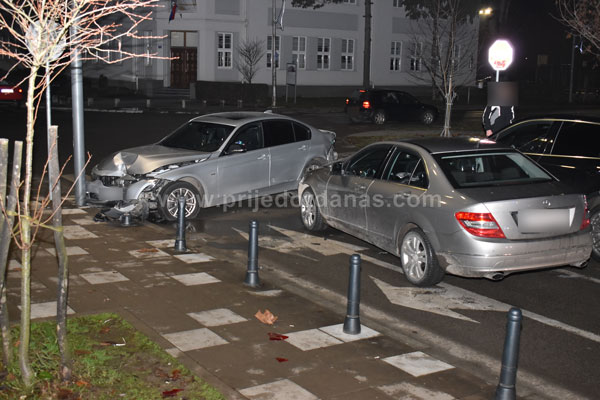 -Dana 11. decembra ove godine oko 00:05 časova u ulici Vuka Karadžića u Prijedoru, dogodila se saobraćajna nezgoda. U njoj su učestvovali lice F.R. iz Prijedora koje je upravljalo putničkim automovilom “Mercedes”, lice A.J. uz Banjaluke koje je upravljalo putničkim automobilom “BMW” i purnilki automobil “Porše” koji je bio parkiran. Tom prilikom lake tjelesne povrede zadobila su F.R., suvozač i putnik u “Mercedesu” A.Lj. iz Prijedora i Đ.T. iz Prijedora, kao i A.J. te suvozač u “BMW-u” lice T.S. iz Prijedoru – potvrdila je Zvezdana Alendarević, portparolka Policijske uprave Prijedor.