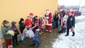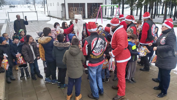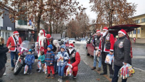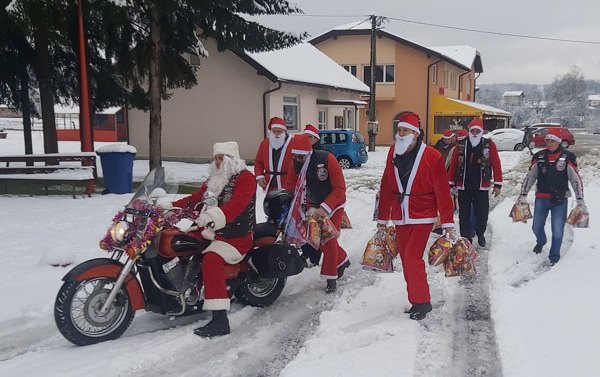 Obučeni u odijelo Djeda Mraza, na motorima članovi Moto kluba ”Otpisani” danas su povodom novogodišnjih praznika na Malom gradskom trgu dijelili novogodišnje paketiće najmlađim sugrađanima.