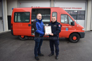 Vatrogasci su Kasimu Mujiću uručili zahvalnicu za donaciju.