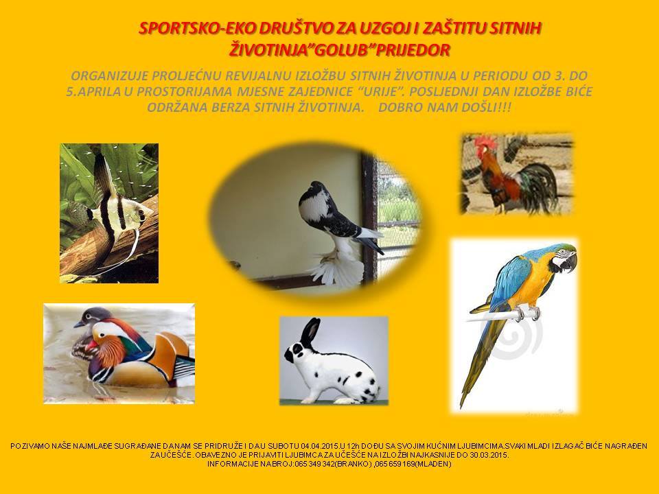 U Prijedoru je poslije sedam godina pauze ponovo zaživjelo Sportsko-ekološko društvo za uzgoj i zaštitu sitnih životinja “Golub”, čija tradicija datira iz 1979. godine.