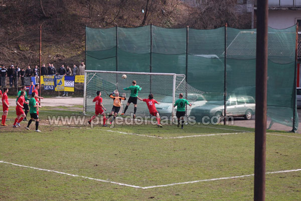 Od početka nametnuli su svoj ritam i brzo dolazili do protivničkog šesnaesterca, a došli su u vođstvo u 25. minuti. U visini kaznenog prostora na lijevoj strani srušen je Dejan Kojić, a Filip Arežina iz slobodnog udarca centrirao na drugu stativu, da bi prvom strijelcu ekipe Siniši Radoji, koji je visoko skočio, preostalo da se „pokloni“ na loptu i peti put ove sezone zatrese mrežu rivala za 1:0.