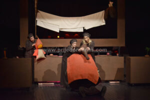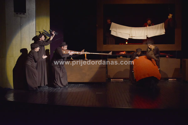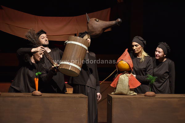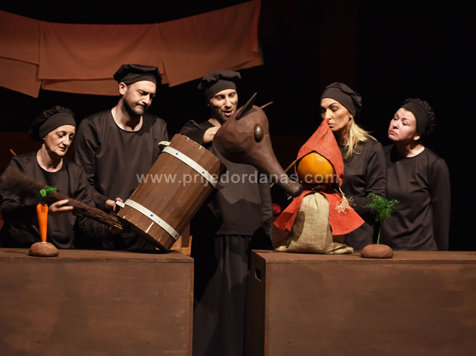 Radnja “Crvenkape” smještena je u kuhinju srednjeg vijeka gdje glumci imaju slobodu da od svih predmeta prave predstavu.