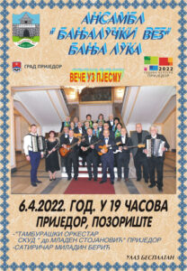 U srijedu 6. aprila u Pozorištu Prijedor će biti održan koncert ansambla “Banjalučki vez” sa početkom u 19 časova.
