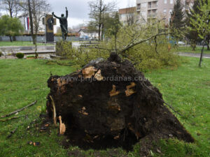 Prijedor: Jak vjetar oborio drvo kod zgrade Gradske uprave – FOTO/VIDEO