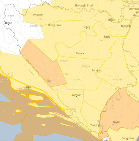 Hidrometeorološki zavodi izdali su žuti meteoalarm za područje Prijedora za ovaj petak, 22. april 2022. godine.