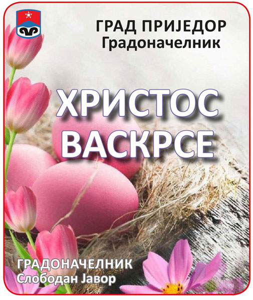 Svim građanima Prijedora pravoslavne vjeroispovijesti čestitam praznik Vaskrsenja Hristovog -Hristos Vaskrse!