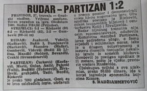 Partizan je pobijedio rezultatom 1:2. Oba gola za goste iz Beograda postigao je Bjeković u prvom poluvremenu, dok je u drugom sa bijele tačke precizan bio “Rudar” Gombović.