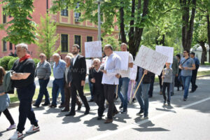 Potomci učesnika u borbi protiv fašizma sa slikama svojih predaka u rukama prošetali su od zgrade Gradske uprave do spomenika Oslobodiocima Prijedora u parku na Pećanima.