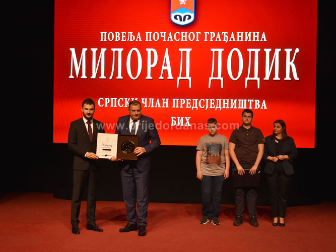 Među prisutnima je bio i srpski član Predsjedništva BiH Milorad Dodik, koji je proglašen za počasnog građanina zbog značajnog doprinosa u razvoju grada.