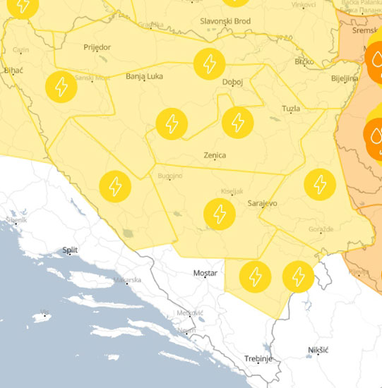 Budite svjesni da se mogu pojaviti oluje sa grmljavinom.