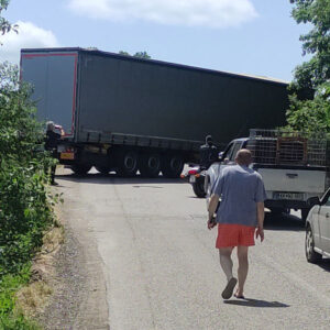 Sa obje strane se formiraju kolone nestrpljivih vozača putničkih automobila i kamiona.