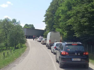 Naime, na jednom dijelu puta se popriječio šleper tako da je trenutno zastoj u oba pravca.
