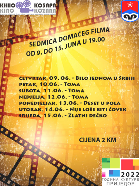 U okviru Prijedorskog ljeta kulture, u kinu Kozara od 9. do 15. juna održaće se “Sedmica domaćeg filma”.