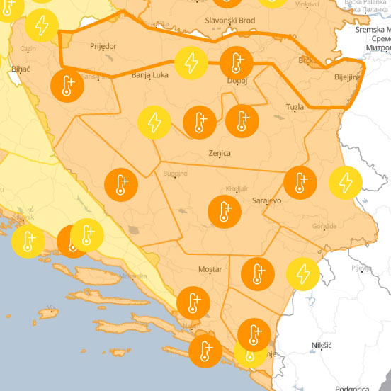 Hidrometeorološki zavodi izdali su narandžasti meteoalarm za područje Prijedora za ovu srijedu, 29. juni 2022. godine.