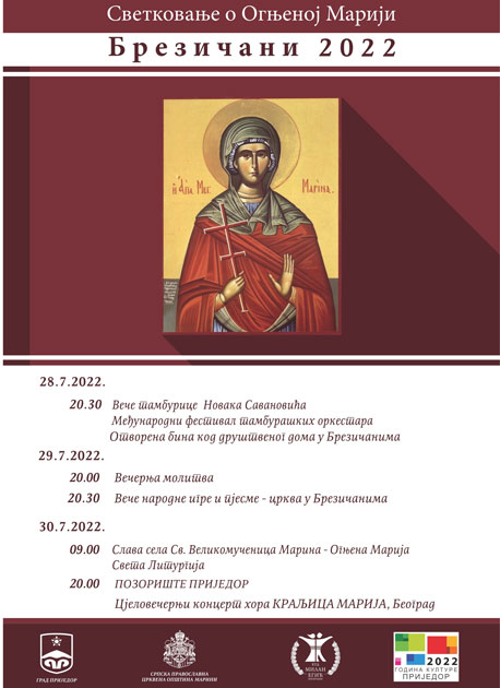 Dan kasnije, posjetioci će imati priliku prisustvovati “Večeri narodne igre i pjesme” kod crkve Svete Velikomučenice Marine u Brezičanima.