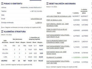 Trenutno kapital RŽR „Ljubija“ iznosi 50.777.428 KM, a nakon dokapitalizacije od 50,7 miliona, će iznositi 101,5 miliona KM, što znači da će Srpska biti manjinski vlasnik.