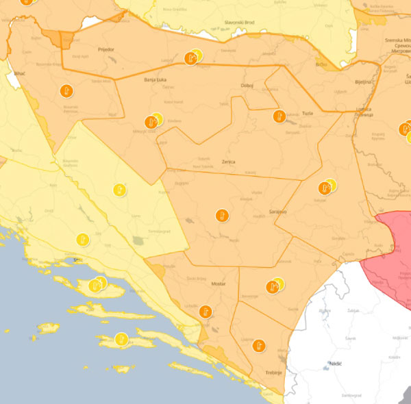 Hidrometeorološki zavodi izdali su narandžasti meteoalarm za područje Prijedora za ovaj četvrtak, 18. avgust 2022. godine.