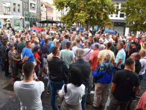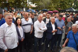 Jaka kiša u Prijedoru nije spriječila opozicionare i nekoliko stotina ljudi, koji su tražili da se spriječi prodaja Rudnika željezne rude Ljubija, koju je Vlada Srpske namjeravala da uradi na kriminalan način.