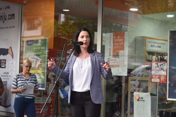 “Mi smo danas došli u Prijedor i odlučno rekli NE prodaji rudnika vrijednog milijardu maraka”, kazala je narodna poslanica Jelena Trivić, koja je navela da je ni jaka kiša nije spriječila opozicionare i građane da kažu vlasti NE prodaja naših javnih resursa za siću nekoj fantomskoj firmi.