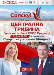 Gradski odbor SNSD-a Prijedor poziva sve članove, simpatizere i građane da prisustvuju Centralnoj tribini!