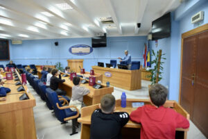 Prijem je za grupu osnovaca organizovao i predsjednik Skupštine grada Mirsad Duratović koji je radoznalim mališanima pokušao da dočara kako to izgleda jedan radni dan u Skupštini grada.