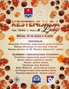 U organizaciji Turističke ogranizacije grada Prijedora u Ljubiji će ovoga petka, 7. oktobra 2022. godine biti održana prva “Kestenijada”.
