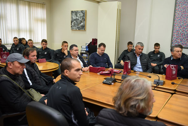Gradonačelnik Prijedora Slobodan Javor organizovao je danas prijem za Upravu i igrače Fudbalskog kluba “Partizan” i njihove domaćine, Upravu FK “Rudar-Prijedor” i Udruženje navijača “Grobari” iz Prijedora.