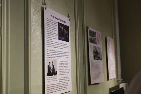 Izložbu je otvorio gradonačelnik Irkutska Ruslan Bolotov, a prilikom svečanosti otvaranja pročitano je pozdravno pismo gradonačelnika Prijedora Slobodana Javora koji se zahvalio na ideji da ova kulturna ustanova priredi jednu ovakvu izložbu.