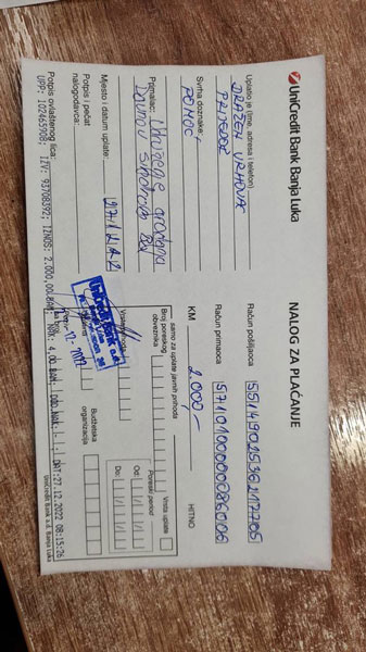 Vrhovac je na svom Tviteru objavio da je poslaničku naknadu u iznosu od 2.000 KM uplatio Udruženju građana „Daunov sindrom“.