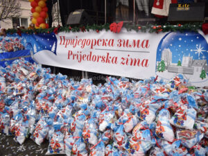 Najmlađi Prijedorčani proslavili Dječiju novu godinu – FOTO/VIDEO admin December 31, 2022 Najmlađi Prijedorčani proslavili Dječiju novu godinu – FOTO/VIDEO2022-12-31T00:21:53+01:00 Društvo, Foto dana, Mladi Likes 0Rating 12345U okviru manifestacije Prijedorska zima danas je za najmlađe organizovana proslava Dječije nove godine. U programu su učestvovali učenici dramske i recitatorske sekcije Osnovne škole “Desanka Maksimović”, učesnice Ritma Evrope, članovi gradskog hora – juniori i glumci Pozorišta Prijedor Željko Kasap i Dean Batoz. Svi zajedno potrudili su se da mališanima provod bude dobar i da im kraj godine ostane u najljepšem sjećanju. Šef kabineta gradonačelnika Danijela Dodoš izjavila je novinarima da je Grad Prijedor ove godine obezbijedio 1.000 paketića koji su podijeljeni najmlađim sugrađanima sa najljepšim željama za srećno i bezbrižno djetinjstvo. “Kada vidite ovu mladost, ljepotu i sve što se ovdje dešava možemo reći da smo bogat grad i da trebamo biti ponosni na sve ono što imamo”, izjavila je Dodoševa. prijedorgrad.org