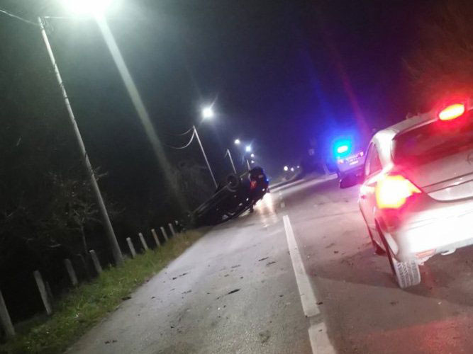 Prema informacijama sa terena, putnički automobil “Reno” je sletio sa kolovoza i prevrnuo se na krov.