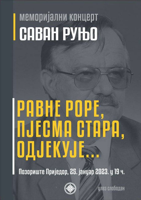 U organizaciji Udruženja za očuvanje tradicije Prijedor, u srijedu, 25. januara ove godine u Pozorištu Prijedor biće održan Memorijalni koncert pod nazivom “Ravne Rore, pjesma stara, odjekuje …” posvećen Savanu Runji.