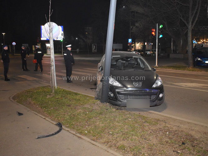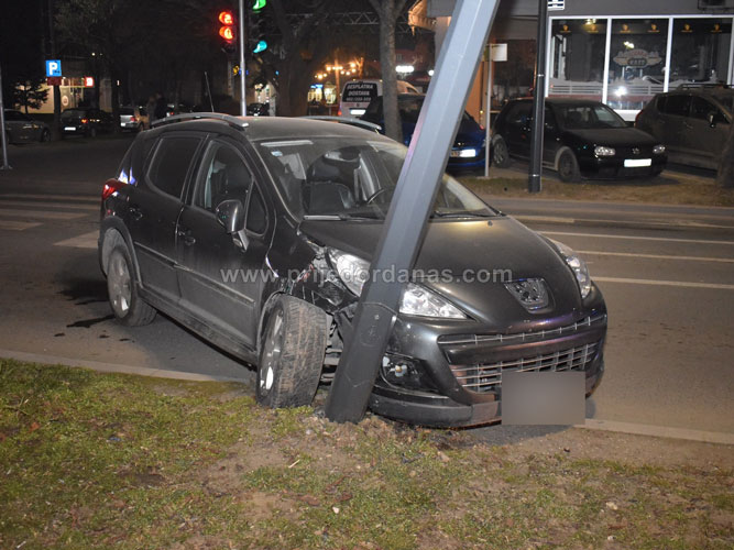 Iz za sada nepoznatih razloga vozilo je nakon prolaska korz raskrsnicu udarilo u stub javne rasvjete.