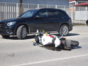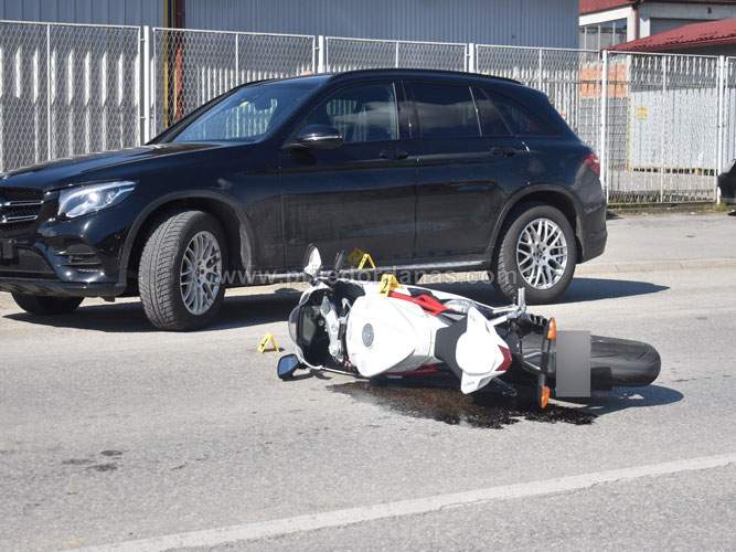Nakon sudara sa automobilom, dva lica koja su se nalazila na motociklu pala su na asfalt.