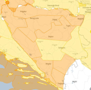 Hidrometeorološki zavodi izdali su narandžasti meteoalarm za područje Prijedora za ovaj utorak, 16. maj 2023. godine.